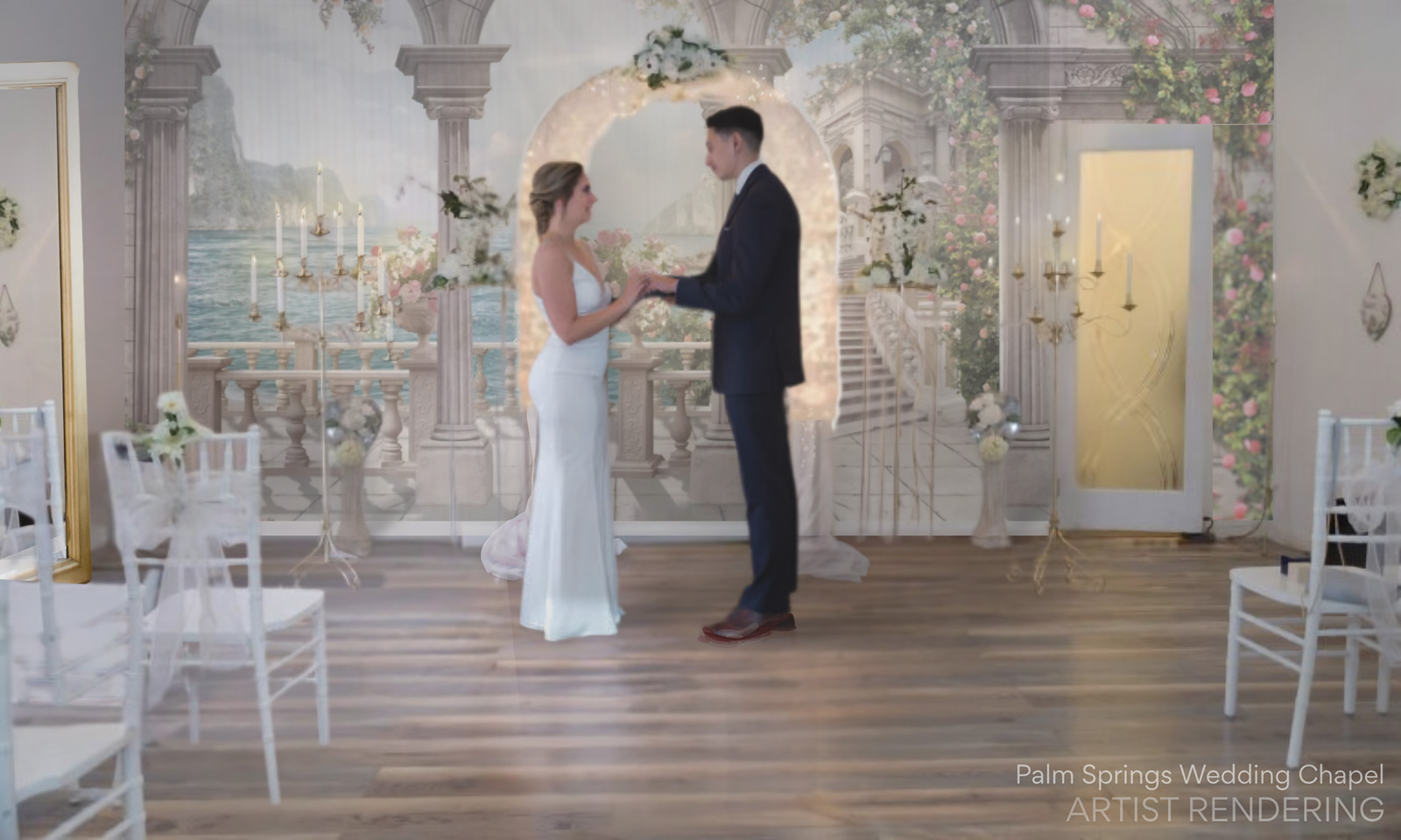Micro Wedding Package: In our Chapel, up to 20 guests inside for $950.00, or outside on the patio with your choice of flower colors for $1,050
